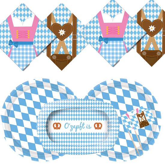 Blue and white balloons and matching banners work well for an Oktoberfest party. You can get all the Oktoberfest decorations you need at one place. You can also find matching tableware for this fine occasion.